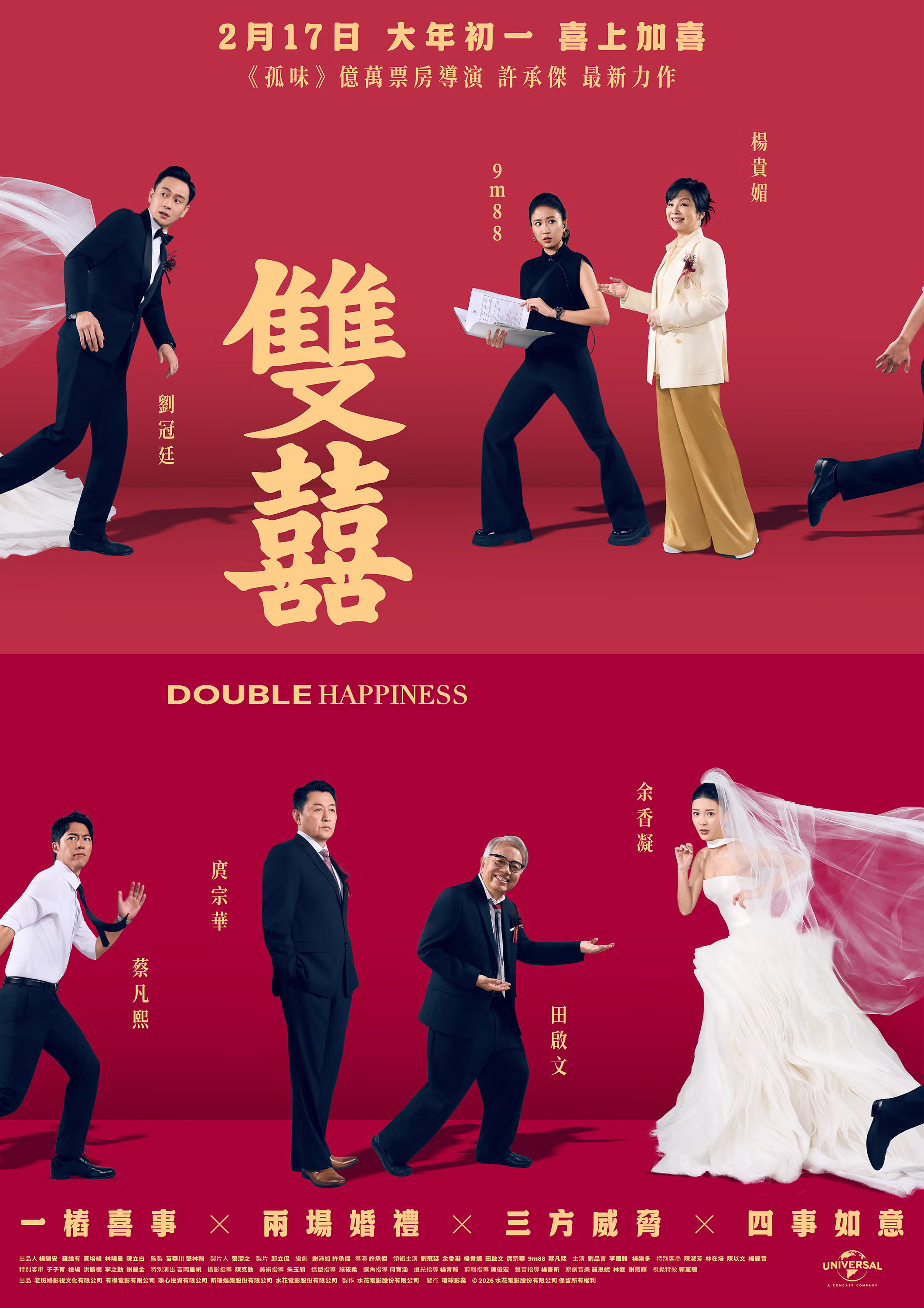 很喜歡電影簡介的這句文案──「一樁喜事 × 兩場婚禮 × 三方威脅 × 四事如意」。